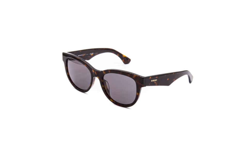 A refined, soft cat-eye silhouette in rich Havana acetate with subtle Burberry temple branding. The clean, sculpted lines flatter most face shapes, while grey Category 3 lenses provide strong-sunlight performance and full UV protection. Elegant, comfortable, and effortlessly wearable — classic Burberry craftsmanship with a modern edge.