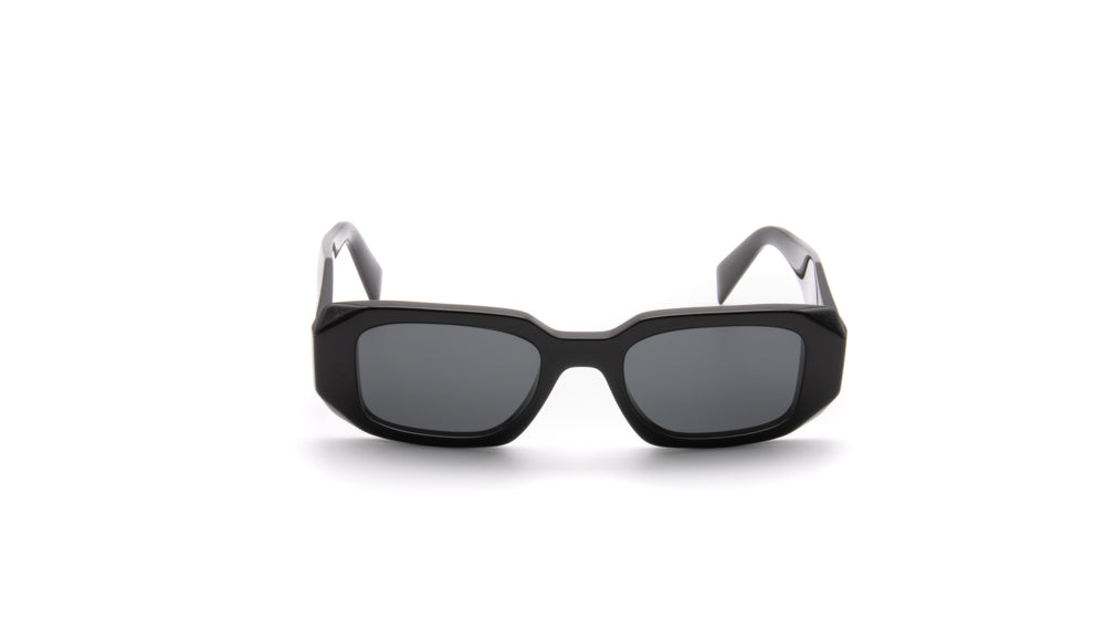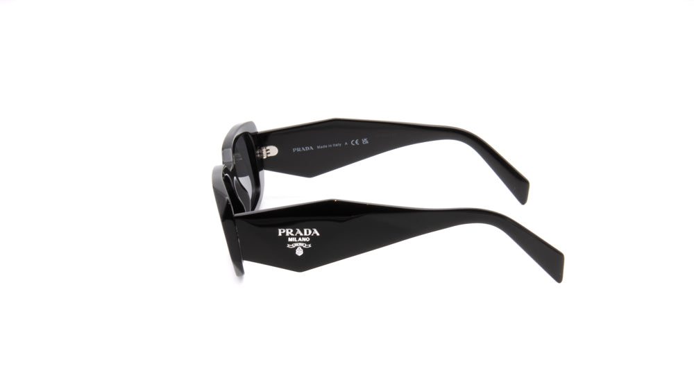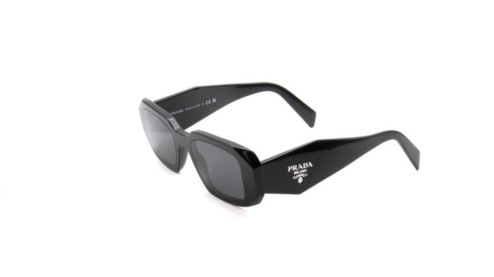 The Prada PR 17WS 1AB-5S0 sunglasses are a sophisticated blend of classic design and modern elegance. Featuring a polished black acetate frame in a rectangular shape, these sunglasses offer a timeless and versatile aesthetic suitable for various face shapes. The dark grey lenses provide 100% UV protection, ensuring optimal eye safety while enhancing visual clarity. Measuring 49mm in lens width, 20mm in bridge width, and 145mm in temple length, they are designed for a comfortable fit. These sunglasses are part of Prada's Symbole collection, reflecting the brand's commitment to high-quality materials and Italian craftsmanship.