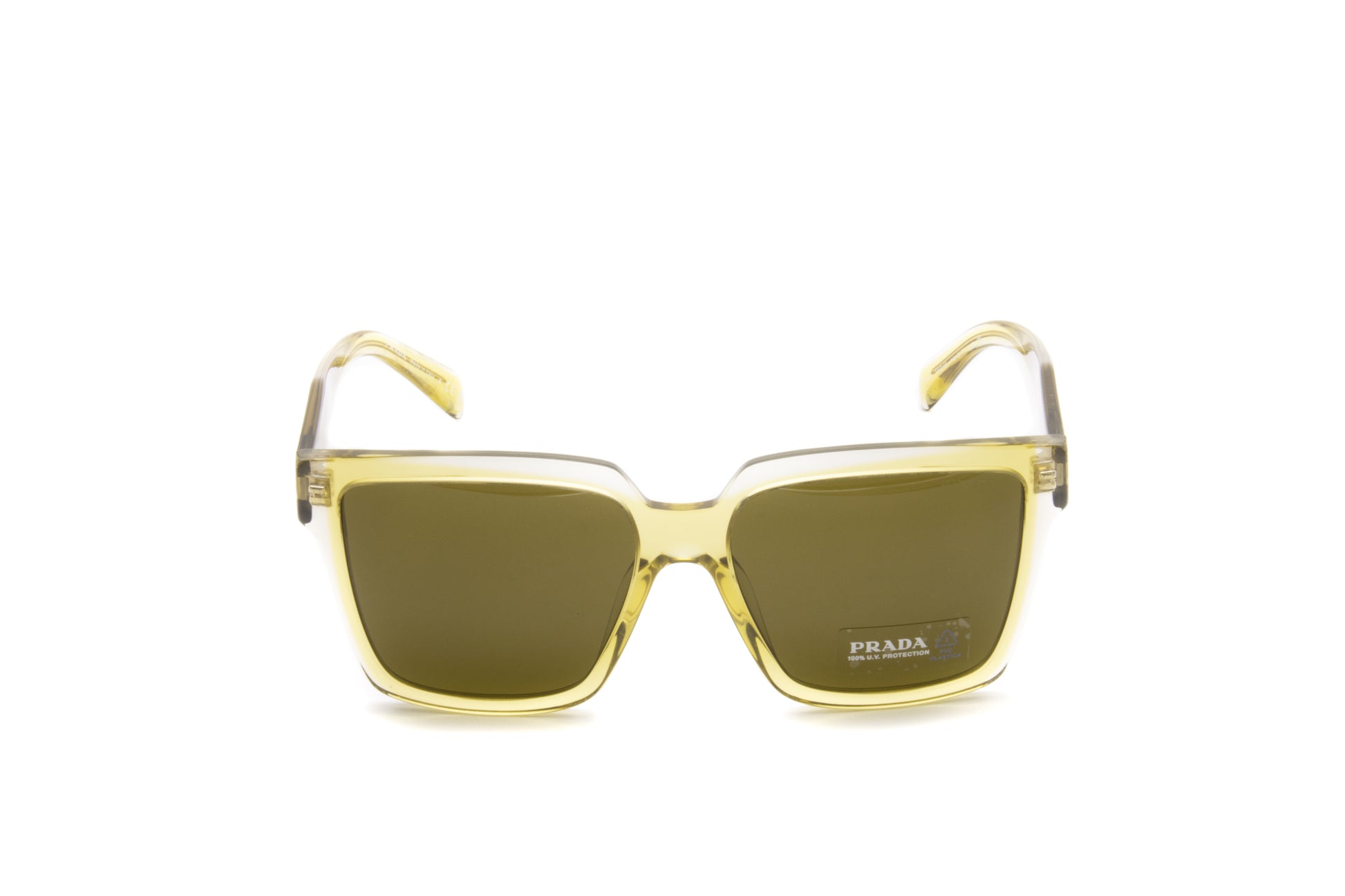 Description: The Prada SPR24Z 14I01T sunglasses feature a striking yellow acetate square frame, offering a bold and contemporary look. With 56mm lenses and 100% UV protection, they blend high-fashion style with everyday functionality, making them a standout accessory.