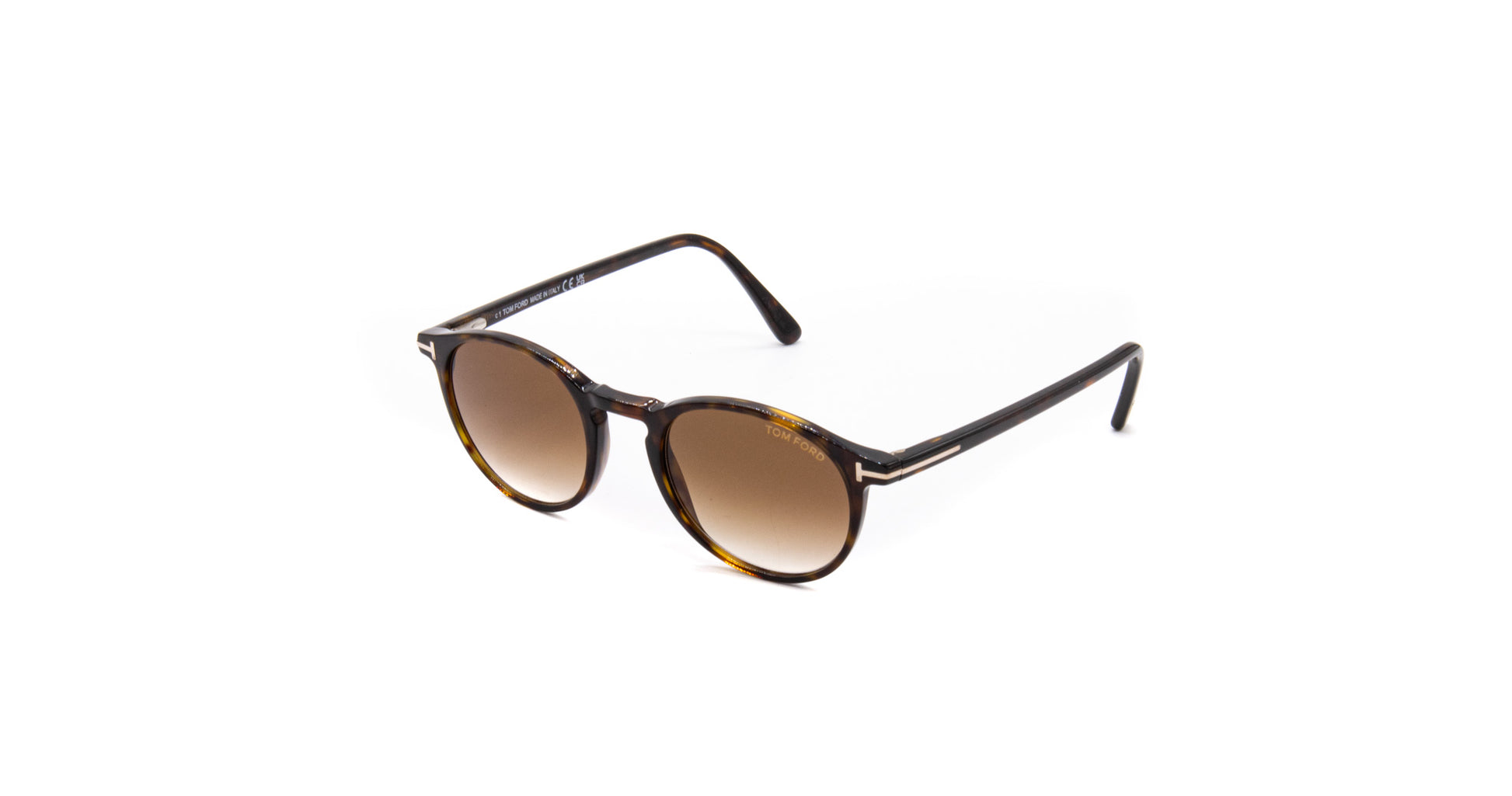 A sophisticated unisex frame featuring a classic round silhouette in Tom Ford’s signature dark havana acetate. The iconic gold “T” temple detailing adds a touch of luxury, while the 52F gradient brown lenses provide elegant sun protection with a warm, stylish finish. Lightweight, comfortable, and timeless—perfect for everyday elevated wear.