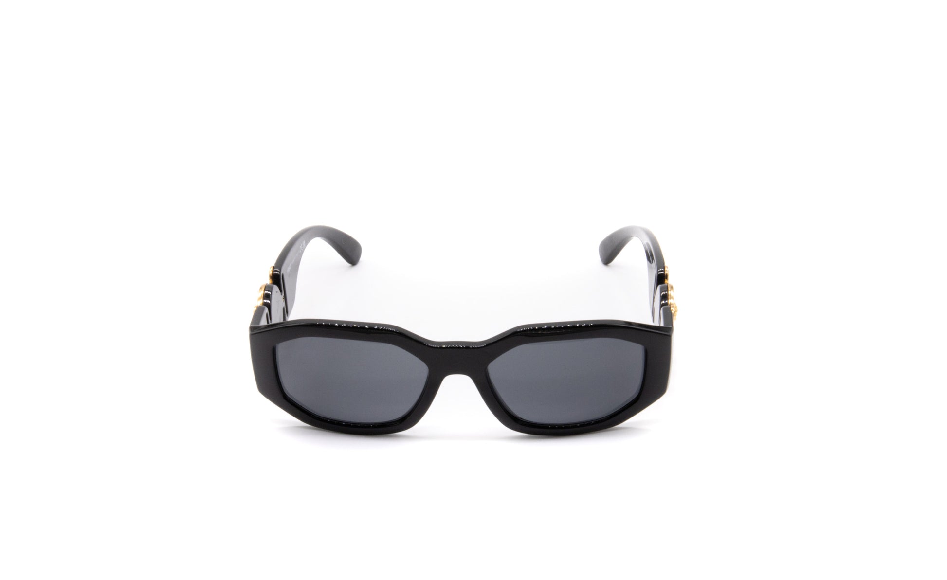 The Versace VE4361 GB1/87 sunglasses are a striking blend of classic design and modern flair. Featuring a shiny black acetate frame with gold metal accents, these sunglasses exude luxury and sophistication. The rectangular shape is complemented by grey lenses that provide 100% UV protection, ensuring both style and safety. With a lens width of 53mm, bridge width of 18mm, and temple length of 140mm, they offer a comfortable fit for various face shapes. The iconic Medusa Biggie design adds a touch of boldness, making these sunglasses a standout accessory for any fashion-forward individual.